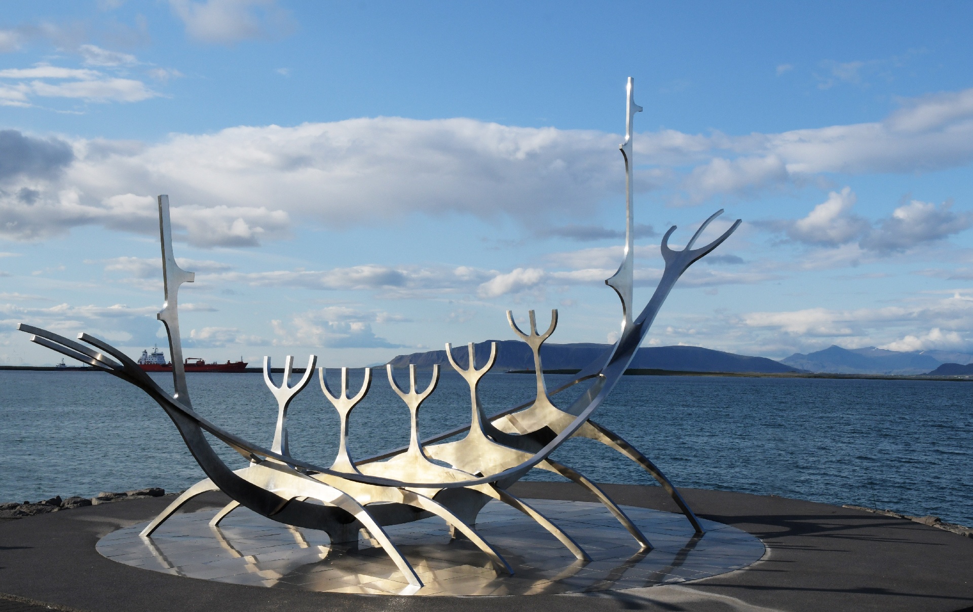 This stylized viking longboat decorates the harbour. This is to remind the Icelandic men to work hard, travel, have adventures!