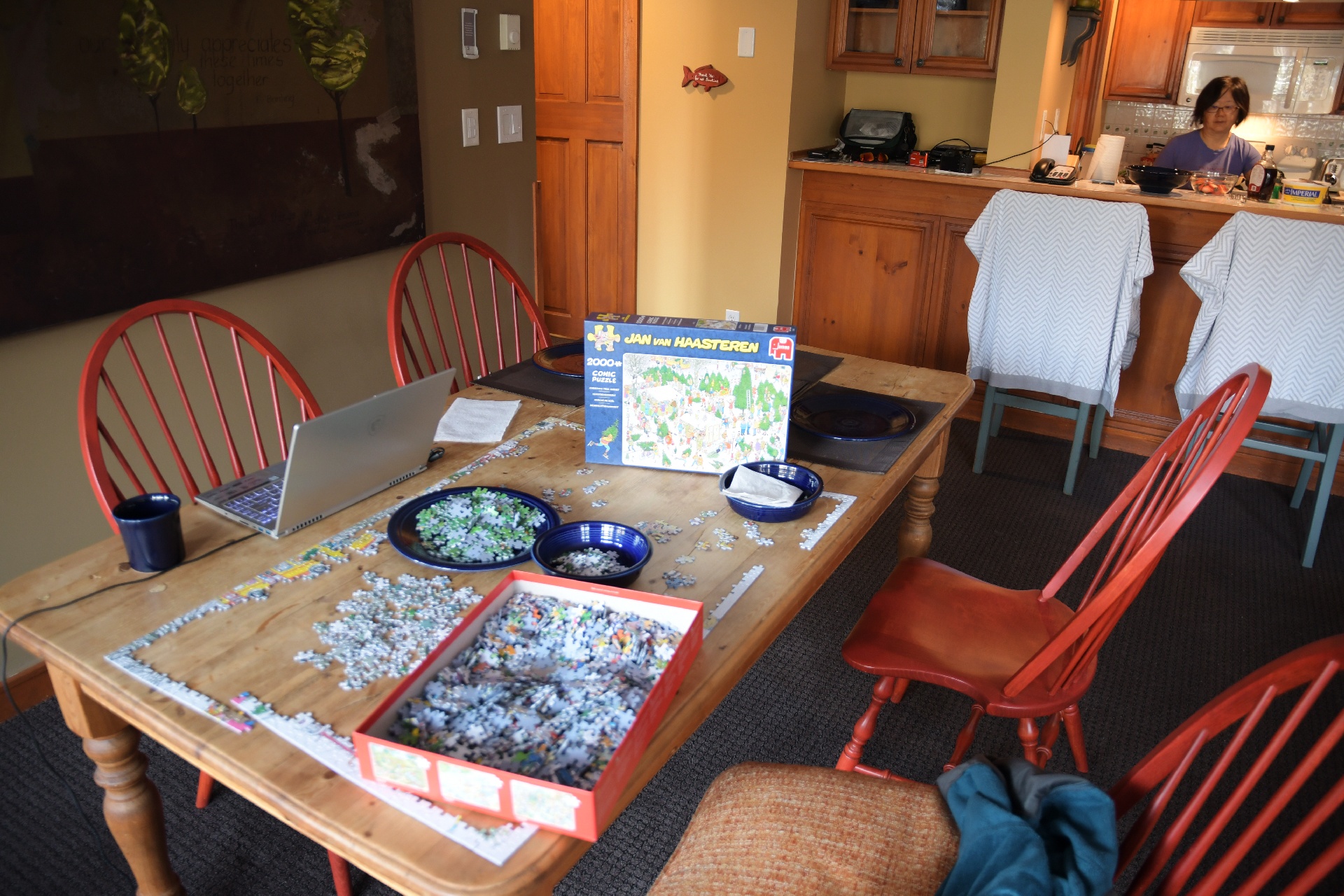 Meawhile, back at the suite, what's a ski holiday without a jigsaw puzzle! A Jan van Haasteren 2,000 piece Christmas tree puzzle!