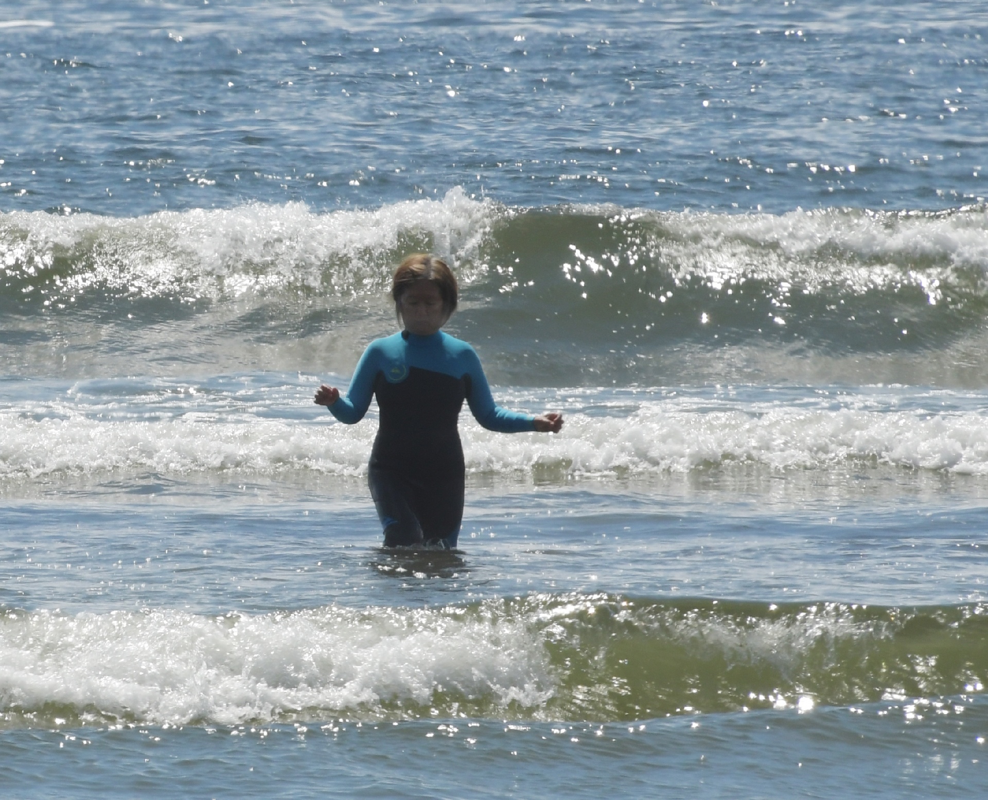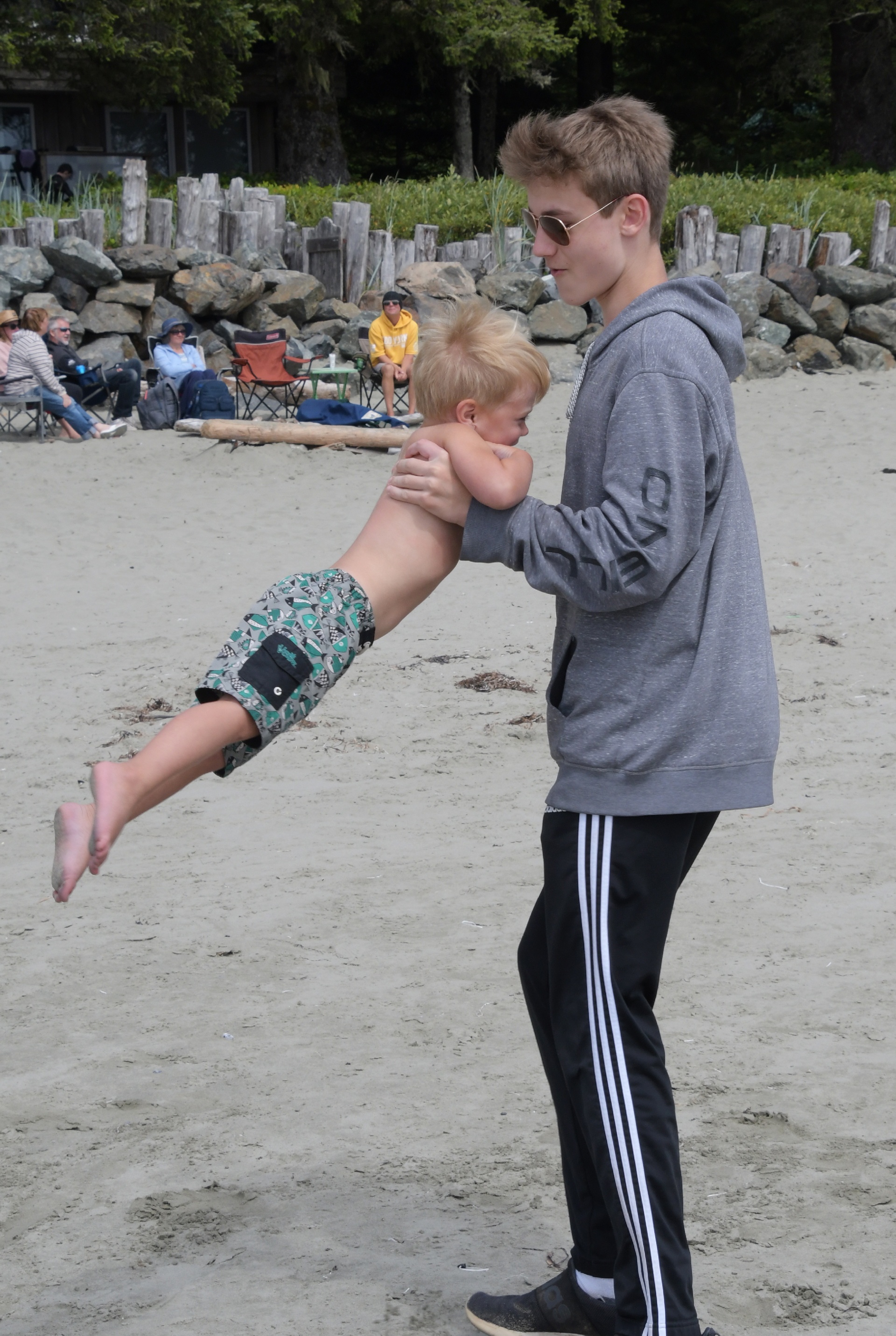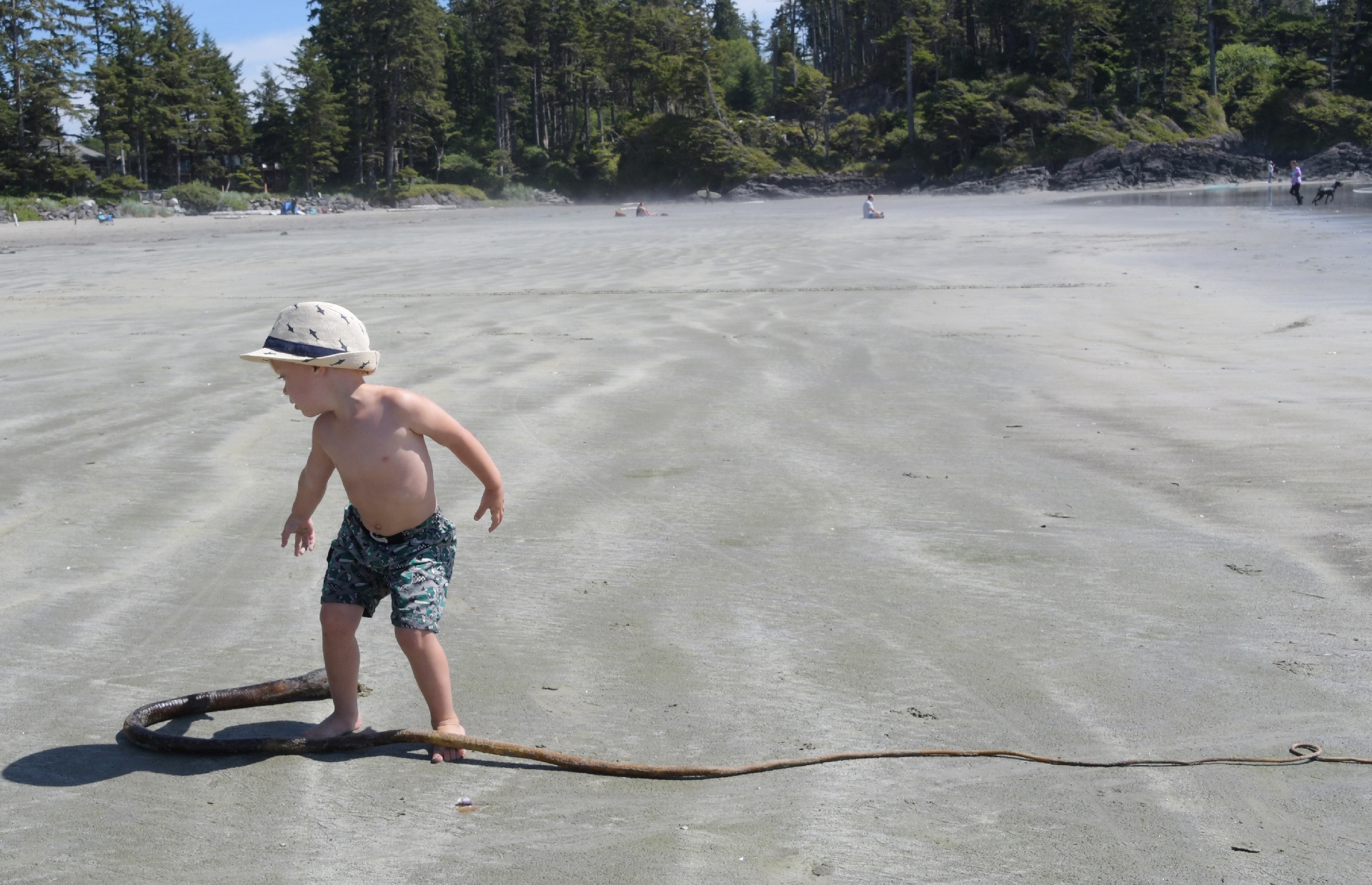 He is trying to throw the seaweed at me, and I'm trying to dodge his attempts, and still get a good picture!