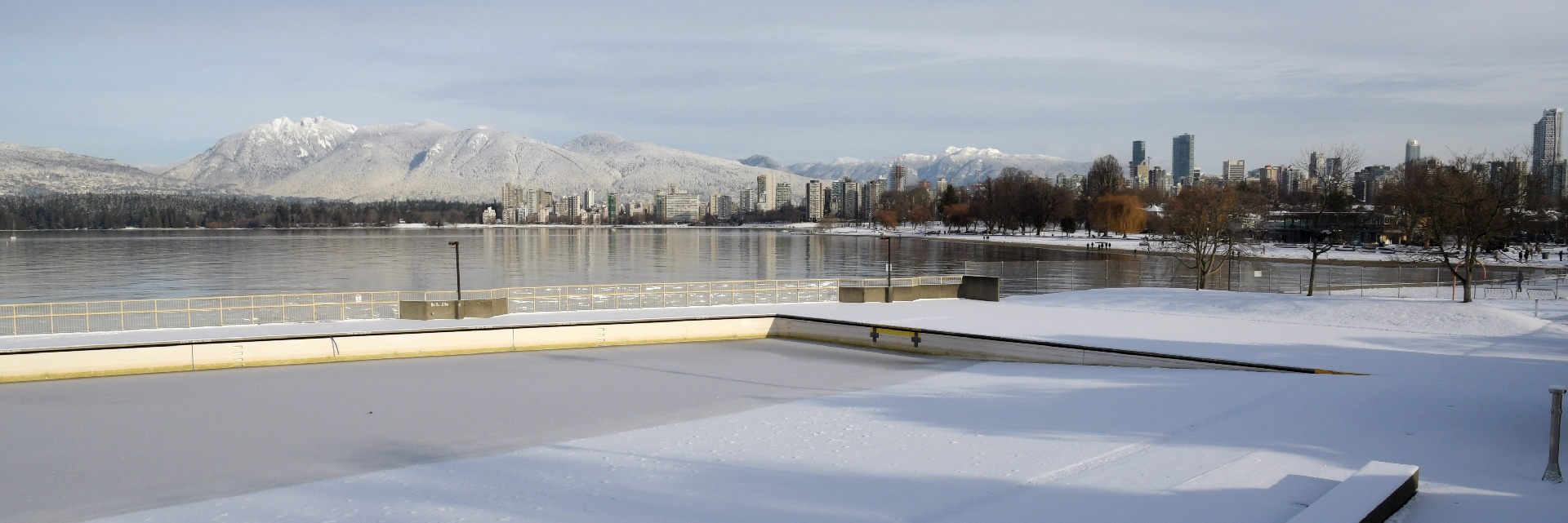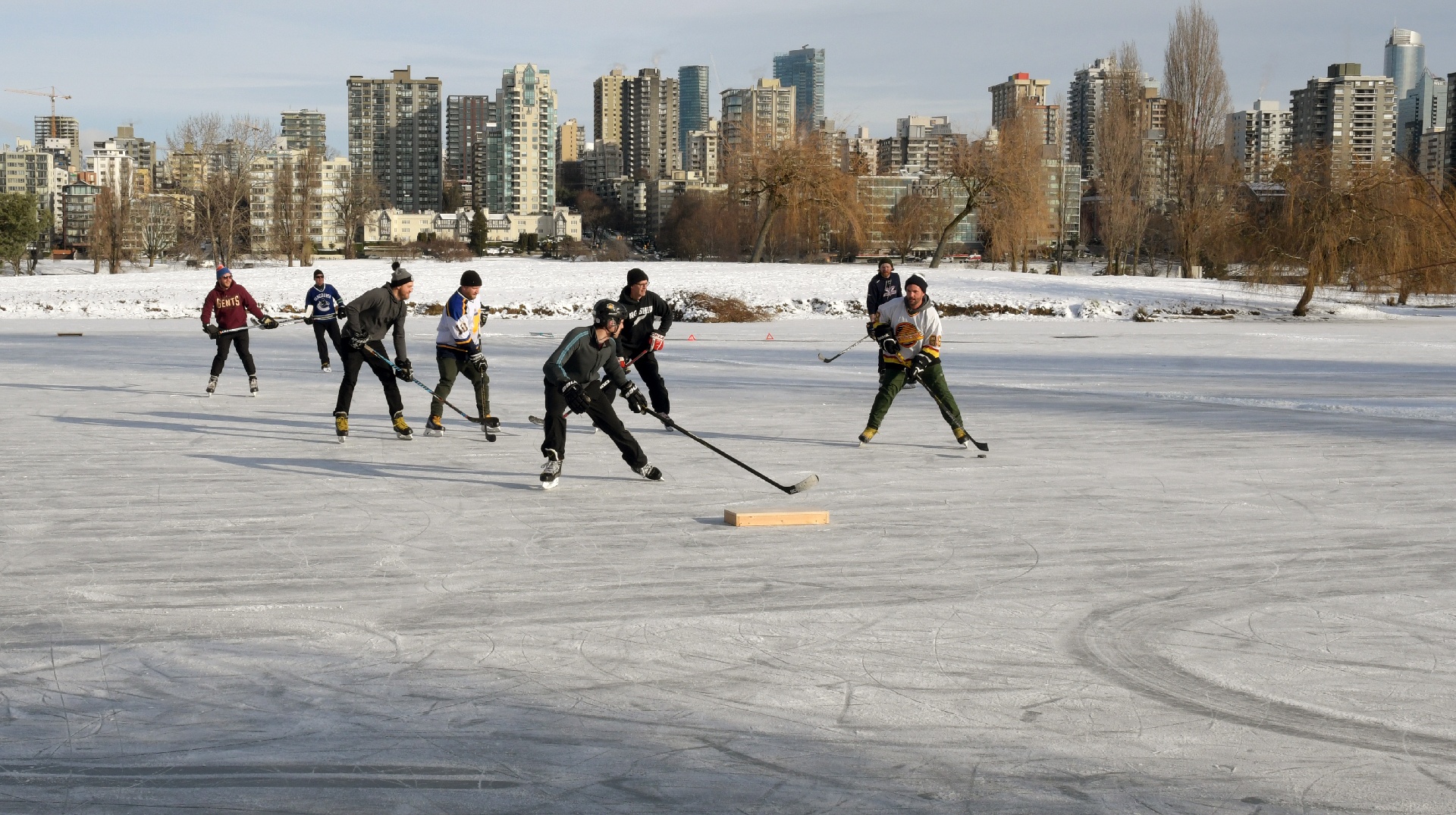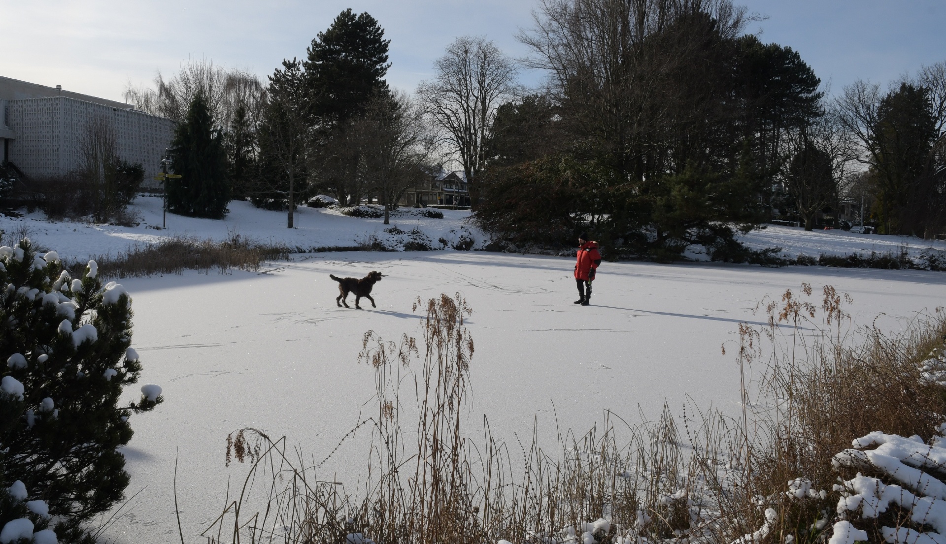 The duck pond behind the Planetarium is now a hockey rink!