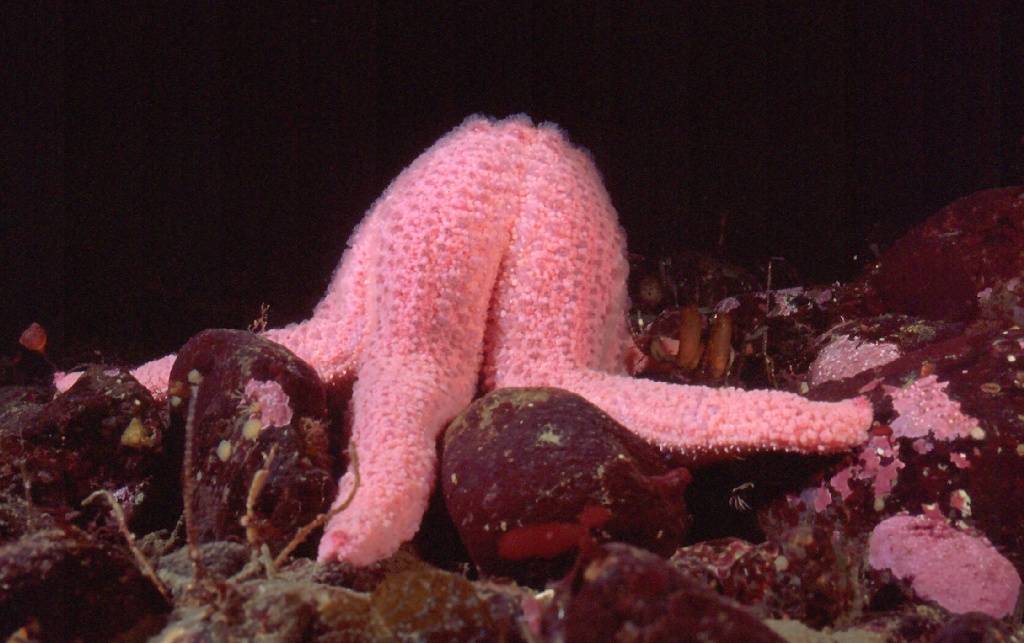 This Pink Starfish has assumed the breeding stance, and will be releasing either sperm or eggs into the great unknown.