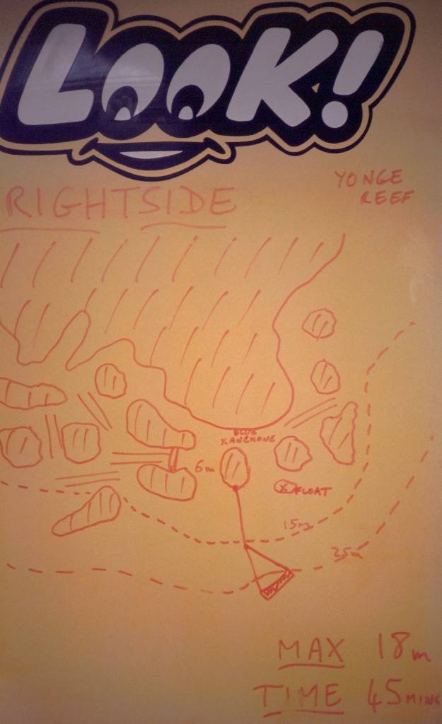 A busy 4 dives-per-day dive schedule (morning, noon, afternoon, night), each preceeded by a thorough briefing.