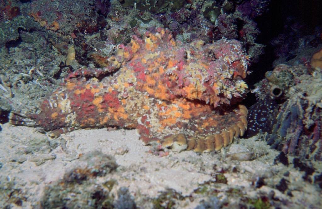 This Stonefish has the most poinonous spines of all, and it likes to blend in! Watch where you step!